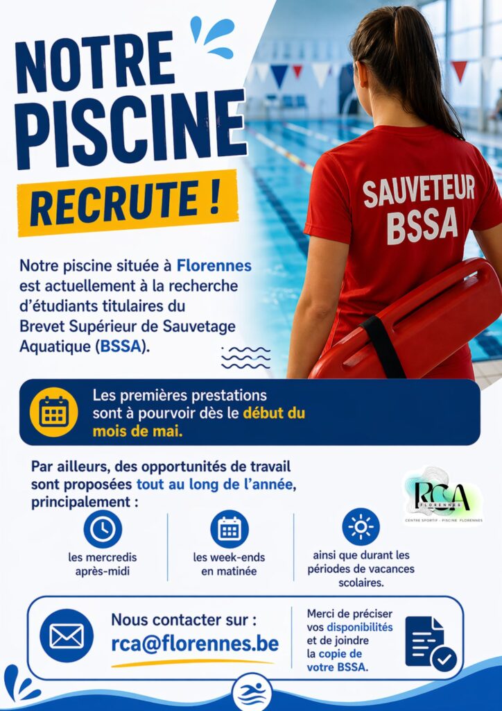 La Piscine de Florennes recrute des étudiants avec BSSA